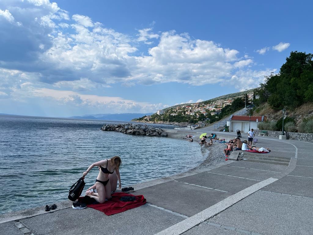 Nach dem Mittagsschlaf, kurz bevor wir die Adria endgültig verlassen, ist noch mal baden im Meer angesagt. Kommentar von Oskar: „Das Wasser is saukalt“ 🥶